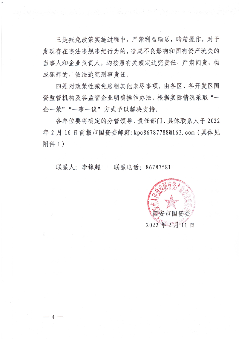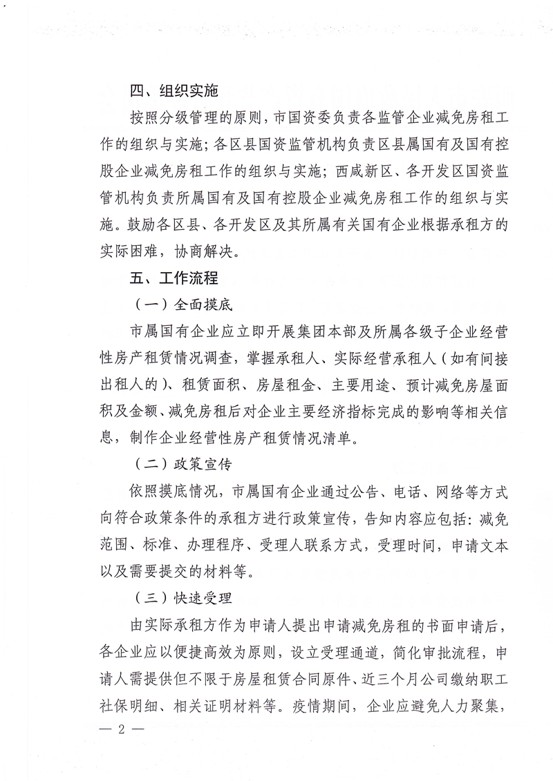 西安市國資委關(guān)于做好減免國有企業(yè)房屋租金工作有關(guān)事項的補充通知