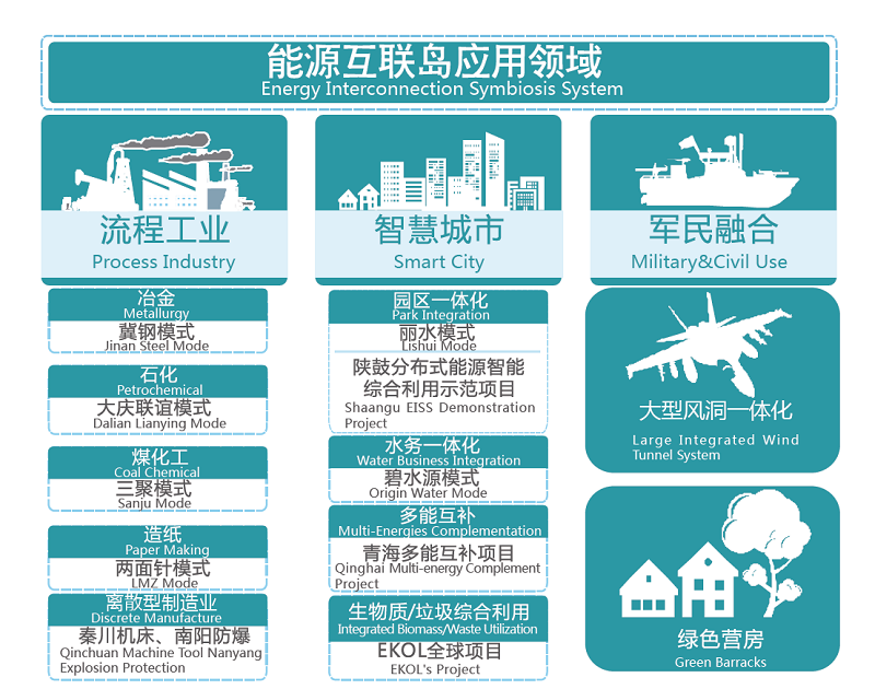 分布式能源智能綜合利用項(xiàng)目——能源互聯(lián)島方案,指分布在用戶端的能源綜合利用系統(tǒng),基于區(qū)域能源物料的供給稟賦,在滿足區(qū)域能源合理需求的前提下,采用互聯(lián)網(wǎng)思維,因地制宜、量體裁衣,綜合利用供給側(cè)能源條件及資源條件,通過技術(shù)、商業(yè)模式創(chuàng)新,提供水、冷、暖、電、氣、固廢處理(生活垃圾、餐廚垃圾及污泥等)等能源(量)全生命周期一體化綜合定制化解決方案,并利用智能管理和互聯(lián)網(wǎng)技術(shù)建立智慧管理系統(tǒng),從而提升資源循環(huán)和自我供給及處理能力,實(shí)現(xiàn)土地集約、設(shè)備集約、功能集約及運(yùn)營集約。